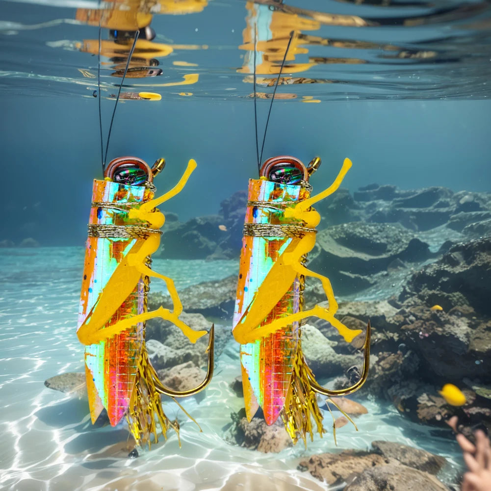2Pcs Grasshopper Fishing Lures, Bionic Mino Bait with Sharp Hook. Mini Lifelike Fishing Lure Reflective for Saltwater, Freshwater