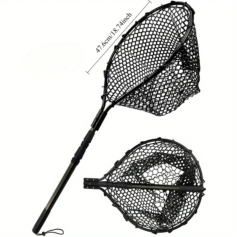 Ackibbik 1pc Fishing Net Rubber Landing Net Large for Saltwater Duty Big Kayak Folding Retractable Fishing Net Long Handle