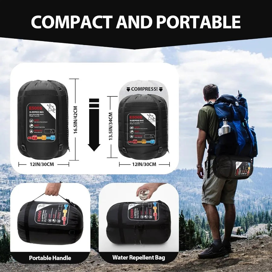 Adult Sleeping Bag All Season Warm Cold Weather Lightweight Backpacking, Large Size