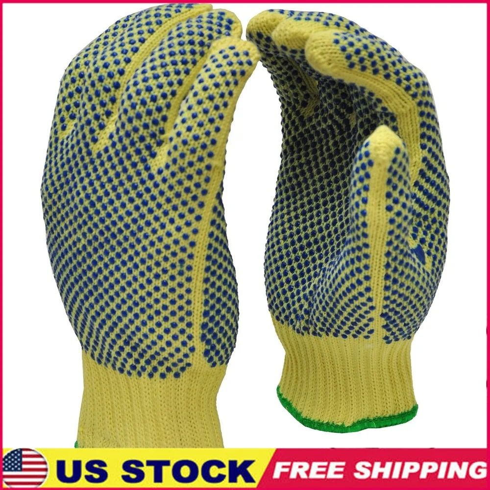 Cut Resistant Kevlar Gloves with PVC Dots Super Grip Safety Cuff Ideal Glass Handling and Cutting