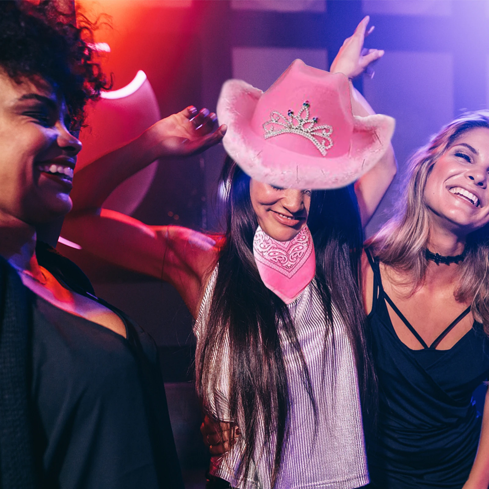 Sparkly Cowboy Hat with Rimless Heart Sunglasses and Ker-Chief for Women Men Party