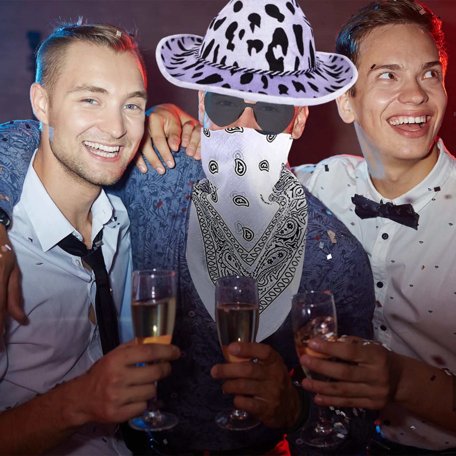 Features 1. Comfortable to wear: these black and white cowboy hats are made of quality non-woven fabric, soft and comfortable to wear, not easy to break or fade, lightweight and durable, wear and tear resistant, which you can wear with confidence for a long time. 2. How to maintain: these cow print cowboy hats are shaped and cannot be folded, folding will destroy the shape of the hat and it is recommended that you wash them by hand and hang up when you are not wearing them. 3. Suitable size: each unisex cowboy hat are suitable for both men and women, the size of hats is proper, suitable for most people. and the hat is attached with a rope and you can tighten it under the chin, convenient to use. 4. Well match: these cowboy hats can match most boots, can be applied to cowboy clothing style, horseback riding, travel, travel, etc, most kinds of wear, simple design, light and strong, tight and loose version. 5. Applied occasions: these cow print unisex cowboy hats are suitable as nice accessories for most adults denim clothing, suitable for men and women to wear in prom, party, holiday, or daily life dresses, making you look full of stylish and showing your charms. Specification Material: Non-woven fabric Color: White& black, White, Pink, Black Size: Cap Height: 14 cm, Length: 35 cm, Width: 32 cm Weight: 97 g, 127 g, 113 g Package Include: 1× Hat or 1× Hat 1× Glasses 1× Square Towel